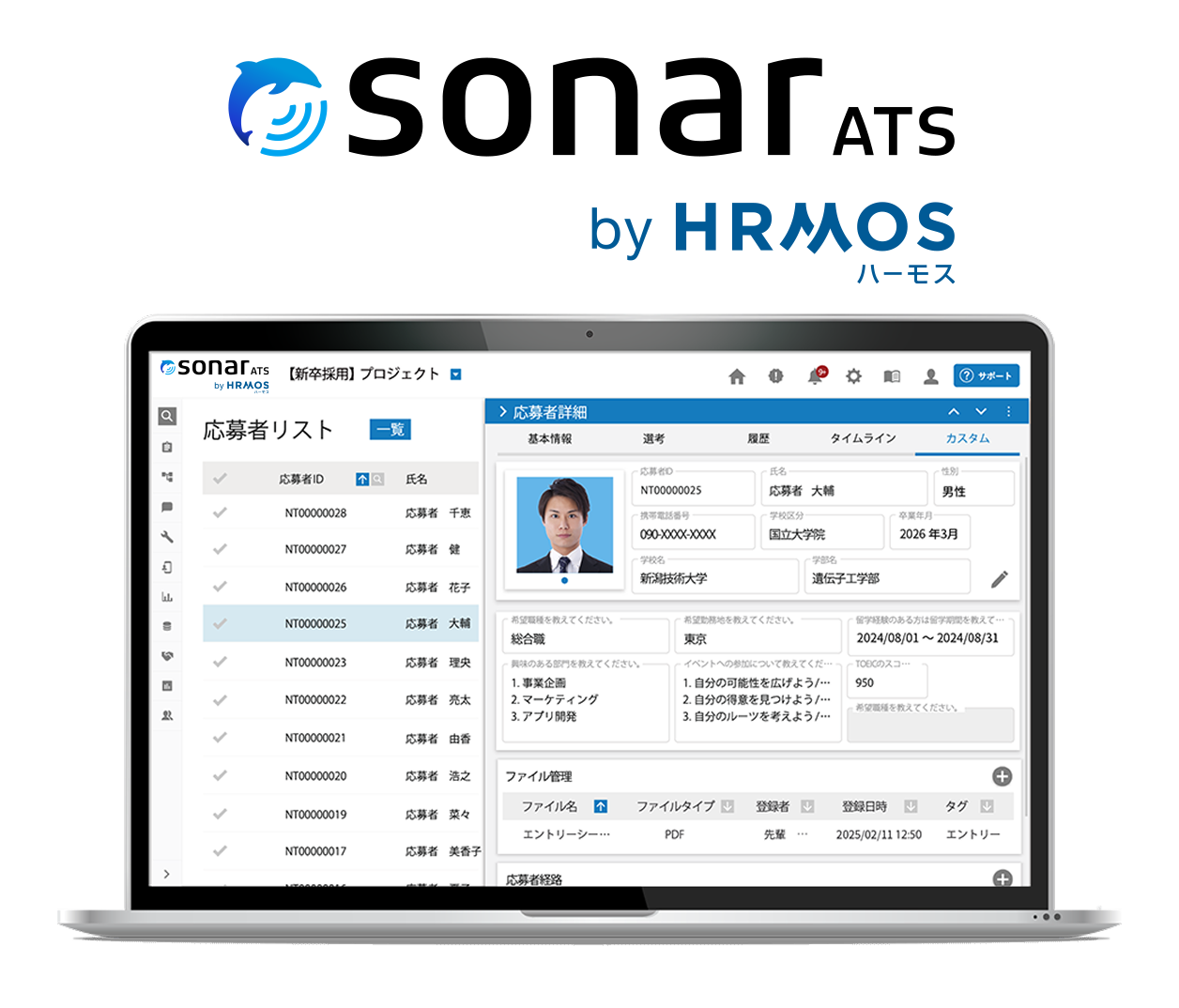 sonar ATSは、採用に関わるオペレーションの自動化とプロセス管理、データ集計分析など、業務のデジタル化を通じて企業の人材採用をサポートするSaaS型サービスです。2,400以上の多様な業種の企業にご導入いただいています。